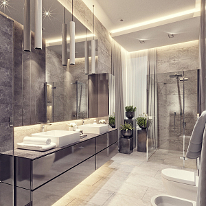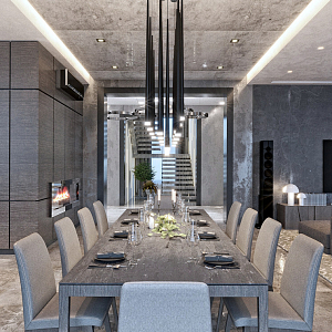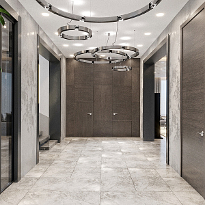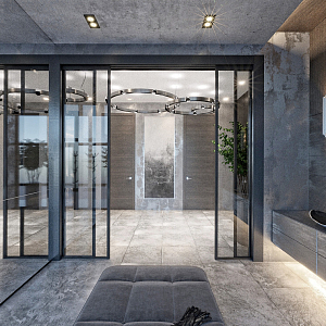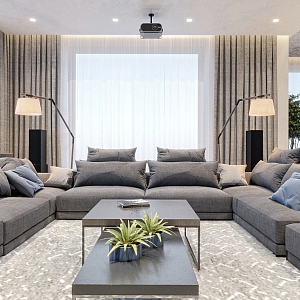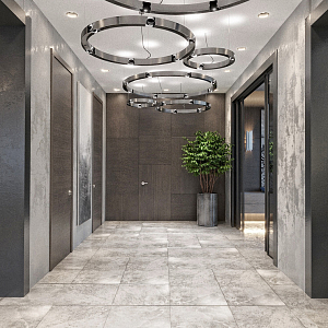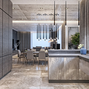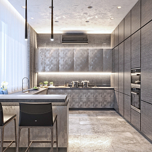 Интерьер гостиной с панно за телевизором, стеной с телевизором, керамогранитом на стену с телевизором и подсветкой настенной в современном стиле, проект «СТАЛЬНАЯ ЛИНИЯ» №1