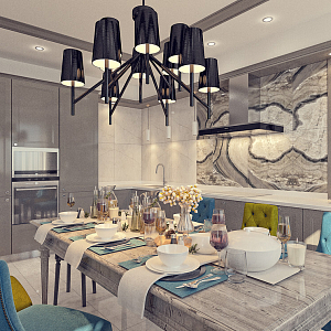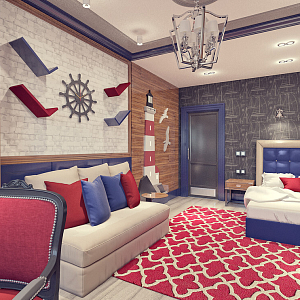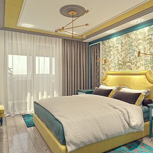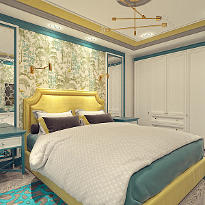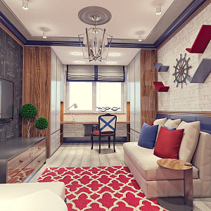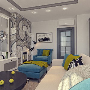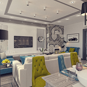 Интерьер гостиной в стиле фьюжн, проект «Море цвета» №4