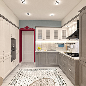 Интерьер кухни c рабочим местом в стиле кантри, проект «ДРУЗЬЯ ЧЕЛОВЕКА» №3