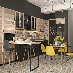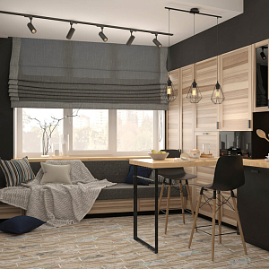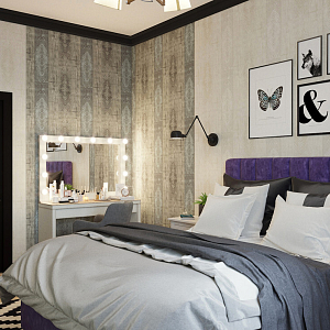 Интерьер спальни в стиле лофт, проект «Квартира в индустриальном стиле» №12