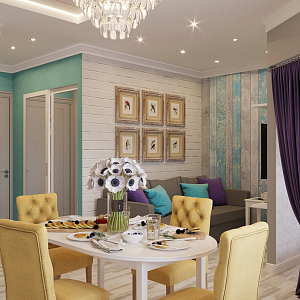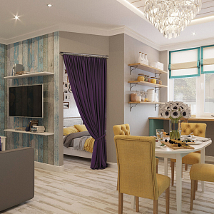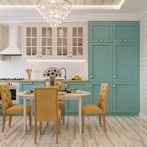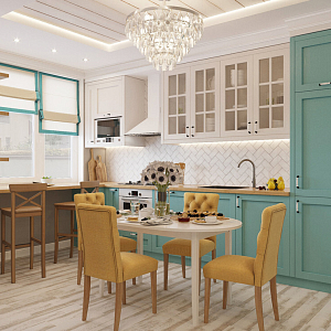 Интерьер кухни с жалюзи, проект «Квартира с яркими акцентами в Сочи» №5