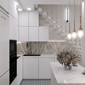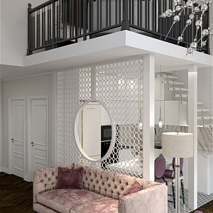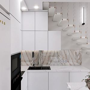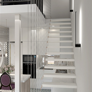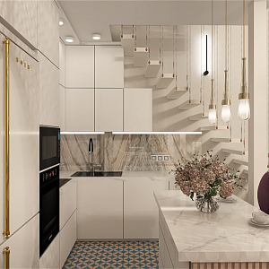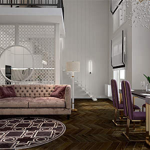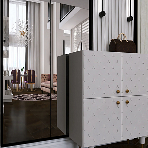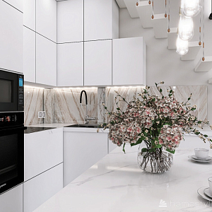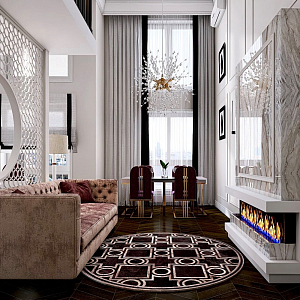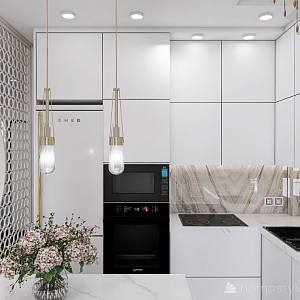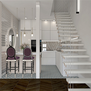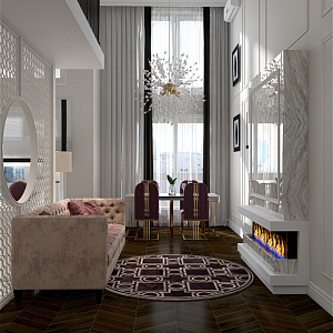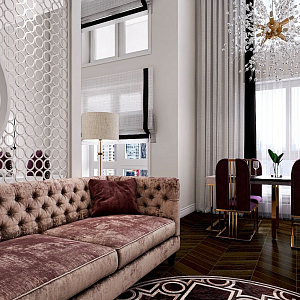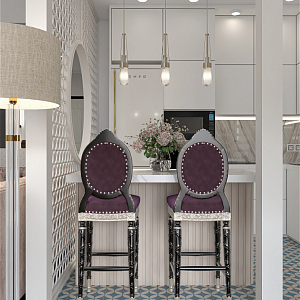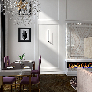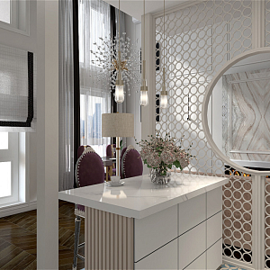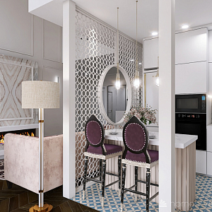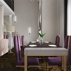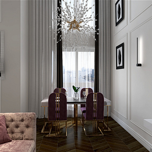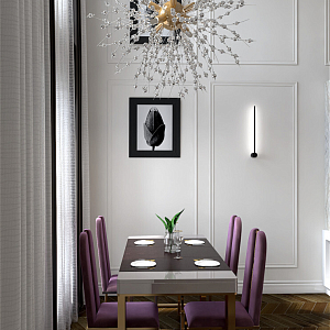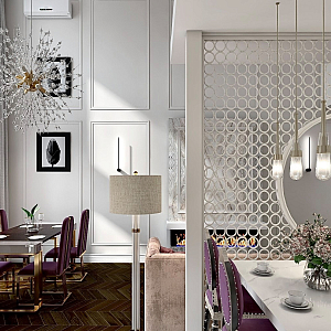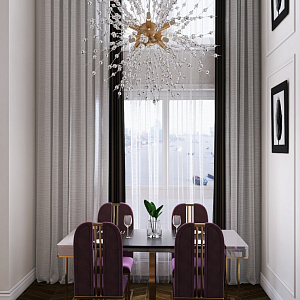 Интерьер столовой с вертикальными жалюзи, дверными жалюзи и жалюзи, проект «Правобережный» №1