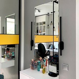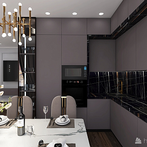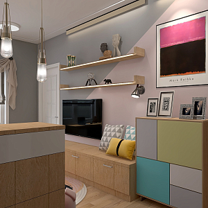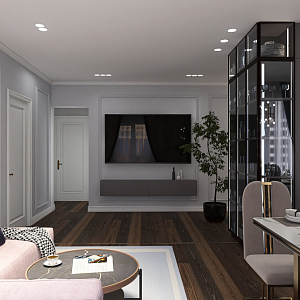 Интерьер гостиной с нишей с подсветкой, световыми линиями, рейками с подсветкой, подсветкой настенной, подсветкой светодиодной, подсветкой рабочей зоны и с подсветкой, проект «Проект на ул. Аржанова» №1