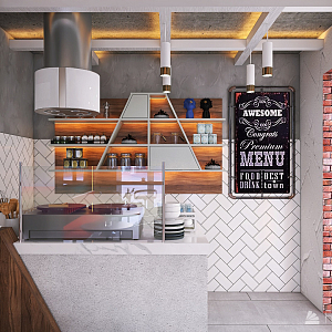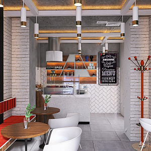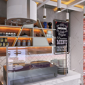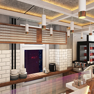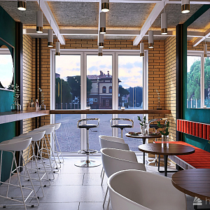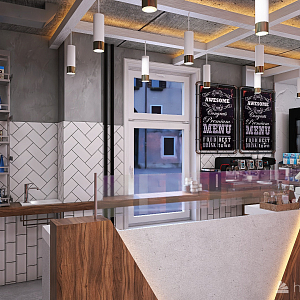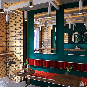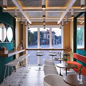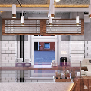 Интерьер кафе и ресторана в стиле лофт, проект «Атамари» №4