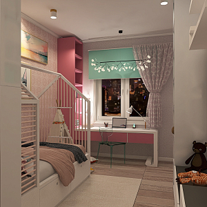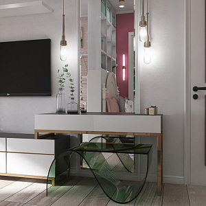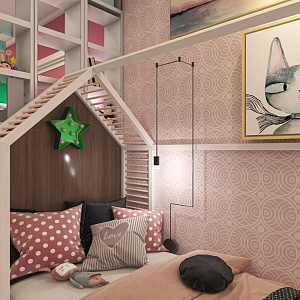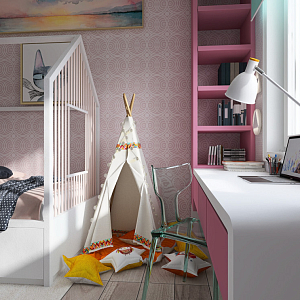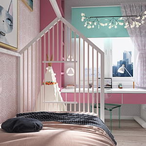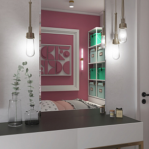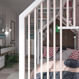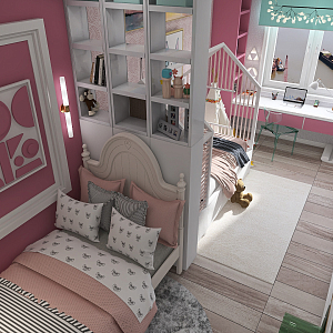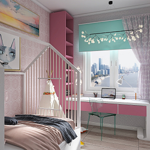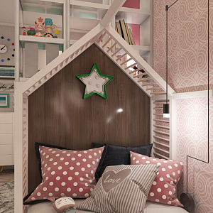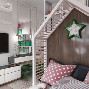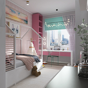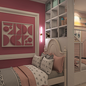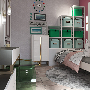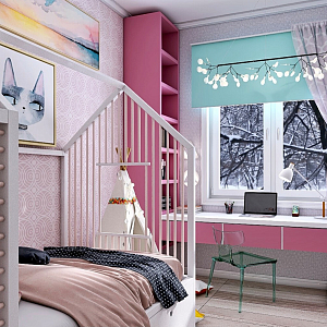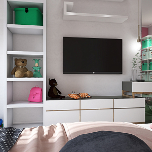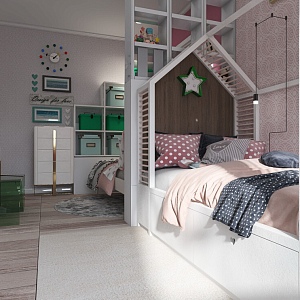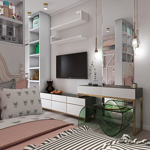 Интерьер детской в современном стиле, проект «Проект детской для двух девочек 4 года и 13 лет и ванной комнаты для семьи» №4
