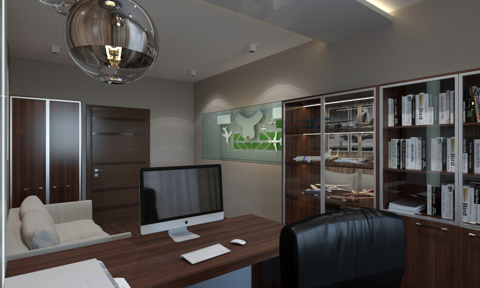 Интерьер c рабочим местом, проект «Современная квартира в темных тонах» №6