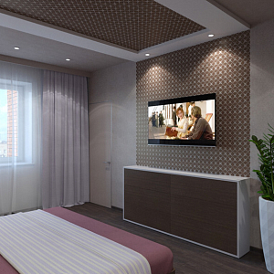 Интерьер кабинета с подсветкой настенной, подсветкой рабочей зоны, подсветкой светодиодной, рейками с подсветкой, с подсветкой, с рабочим местом, светильниками над кроватью и световыми линиями, проект «Современная квартира в темных тонах» №9