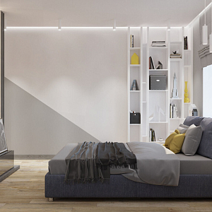 Интерьер c рабочим местом в современном стиле, проект «Зефир комната №3» №6