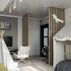 Интерьер детской c детской в стиле лофт, проект «Маршмэллоу» №2
