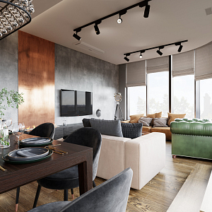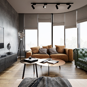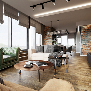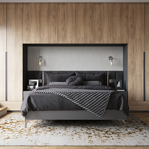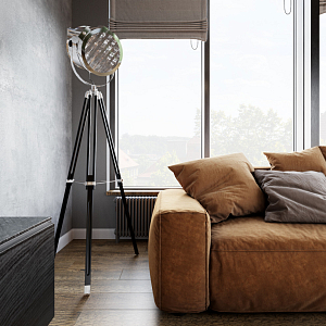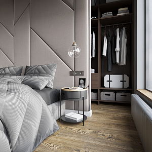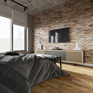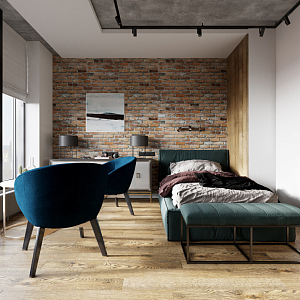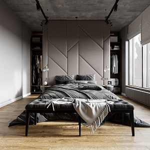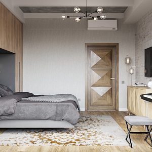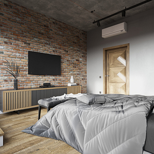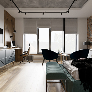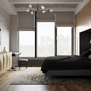 Интерьер спальни cветильниками над кроватью в стиле лофт, проект «Пентхаус в стиле лофт проект» №15