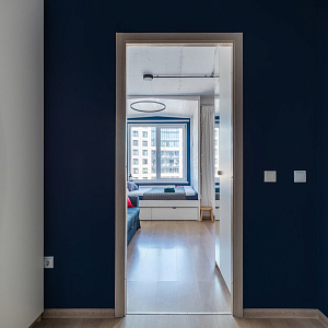 Интерьер балкона с окном, балконом, вертикальными жалюзи и пластиковыми окнами, проект «Супербюджетный ремонт для студии на Васильевском» №16