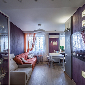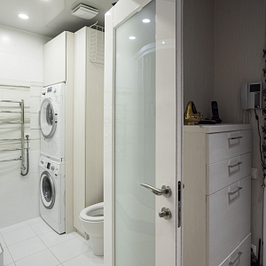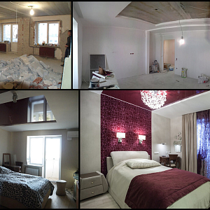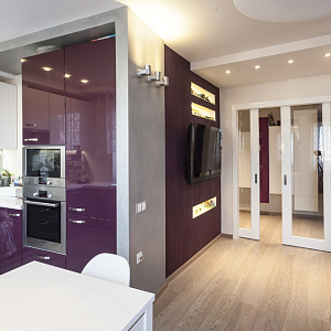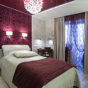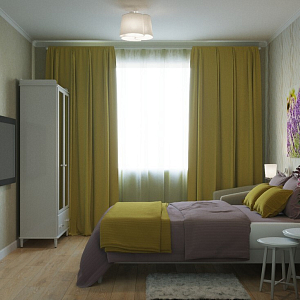 Интерьер спальни с нишей с подсветкой, световыми линиями, рейками с подсветкой, подсветкой настенной, подсветкой светодиодной, светильниками над кроватью и с подсветкой в современном стиле, проект «Двухкомнатная квартира в современном стиле.» №12