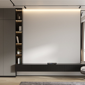 Интерьер спальни с бра над кроватью, светильниками над кроватью, шкафом над кроватью и шкафом у кровати в современном стиле и в стиле лофт, проект «Проект спальни в загородном доме.» №4
