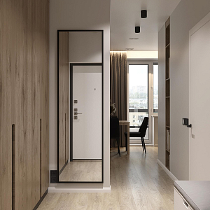 Интерьер спальни с подсветкой настенной, подсветкой светодиодной, рейками с подсветкой, светильниками над кроватью и световыми линиями, проект «Минимализм для жизни Балашиха 40,5 кв.м., Квартира» №18