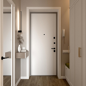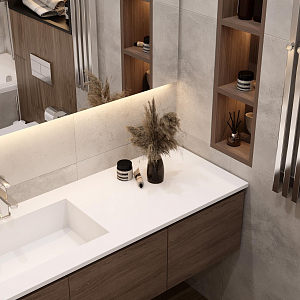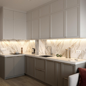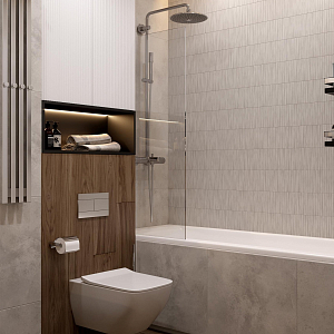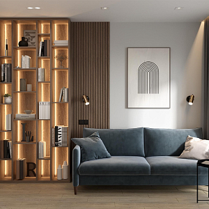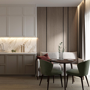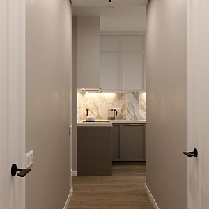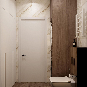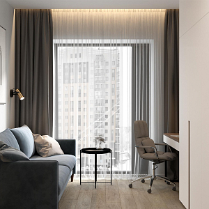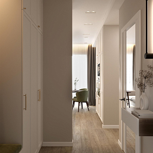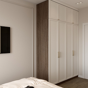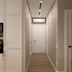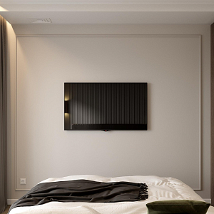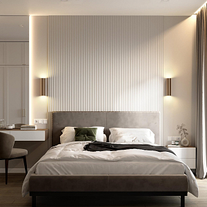 Интерьер спальни с нишей с подсветкой, световыми линиями, рейками с подсветкой, бра над кроватью, подсветкой настенной, подсветкой светодиодной, светильниками над кроватью и с подсветкой, проект «Интерьер с элементами классики Москва 58,5 кв.м., Квартира» №19