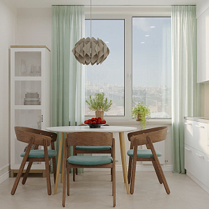 Интерьер кухни с вертикальными жалюзи в неоклассике, проект «Квартира в ЖК "Талисман"» №1