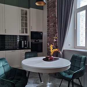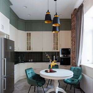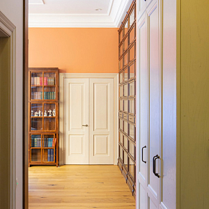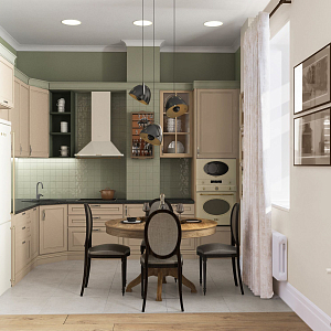 Интерьер кухни cветовыми линиями, рейками с подсветкой, подсветкой настенной и подсветкой светодиодной в классическом стиле, проект «Квартира на Цветном бульваре (реализация и визуализация)» №27