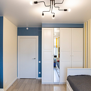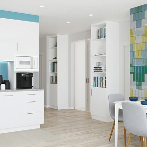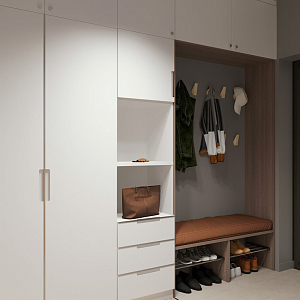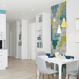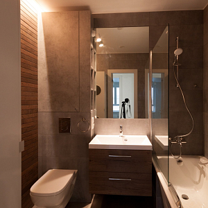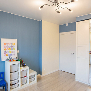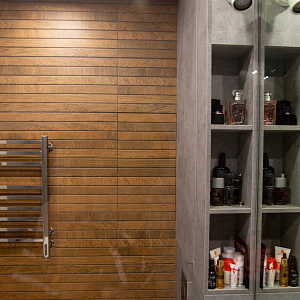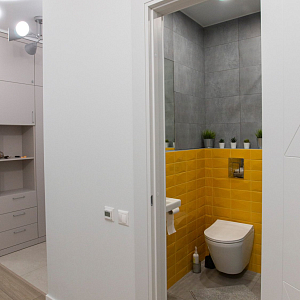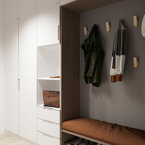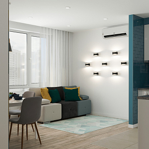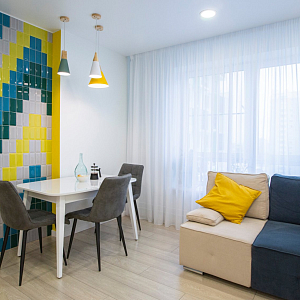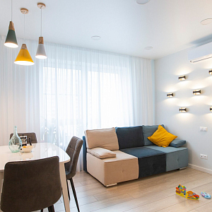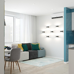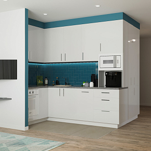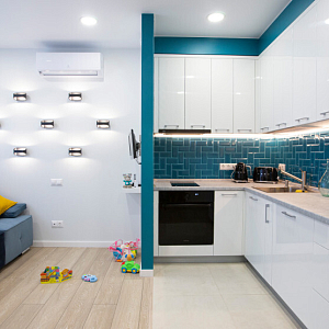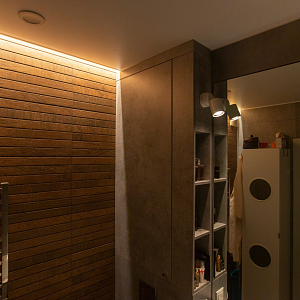 Интерьер кухни cветовыми линиями, рейками с подсветкой, подсветкой настенной, подсветкой светодиодной и с подсветкой в современном стиле, проект «Квартира на улице Мельникова (реализация)» №6