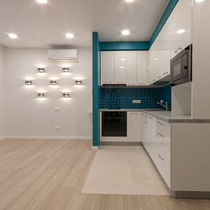 Интерьер спальни с нишей с подсветкой, подсветкой настенной, подсветкой светодиодной, рейками с подсветкой, с подсветкой, светильниками над кроватью и световыми линиями в современном стиле, проект «Квартира на улице Мельникова (реализация)» №61