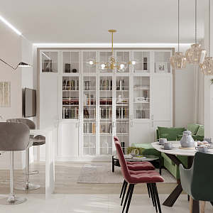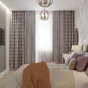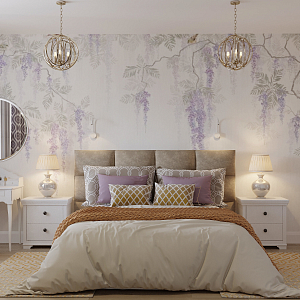 Интерьер спальни cветильниками над кроватью в неоклассике, проект «Квартира в ЖК Эдинбург» №7