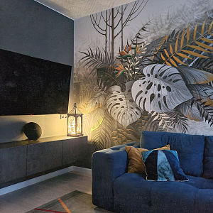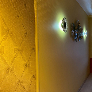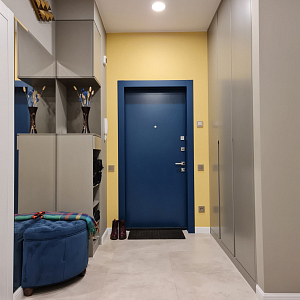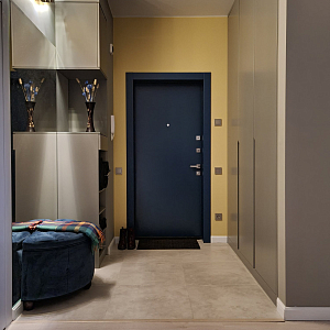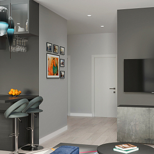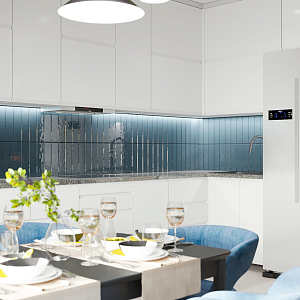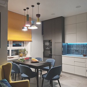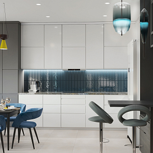 Интерьер кухни с рейками с подсветкой, подсветкой настенной, подсветкой светодиодной, подсветкой рабочей зоны и с подсветкой в современном стиле, проект «Квартира на ул. Разведчика Абеля (реализация и проект)» №12