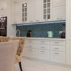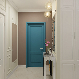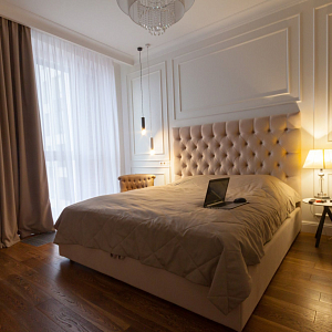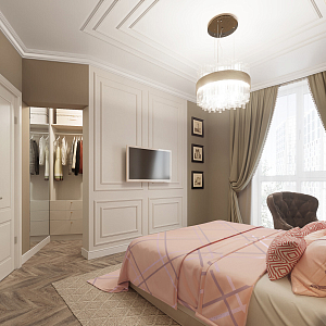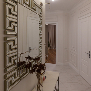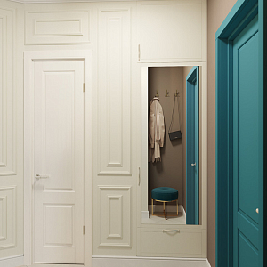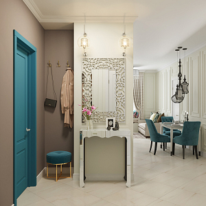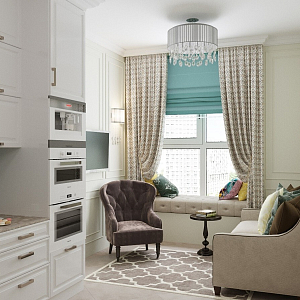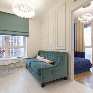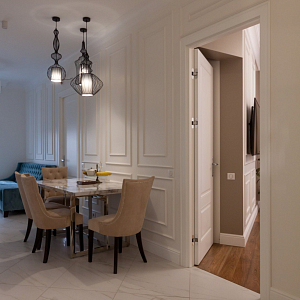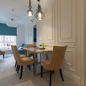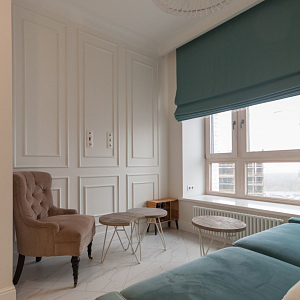 Интерьер гостиной с балконом в неоклассике, проект «Квартира в ЖК "Невский"» №12