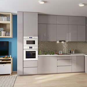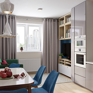 Интерьер столовой с подсветкой настенной в современном стиле, проект «Проект кухни в Люберцах» №1