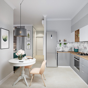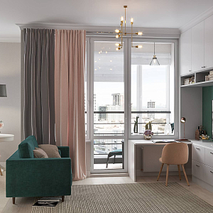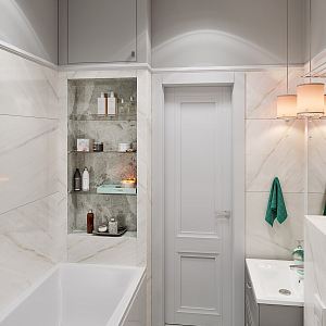 Интерьер гостиной в неоклассике, проект «Квартира однокомнатная в ЖК "Тушино"» №7