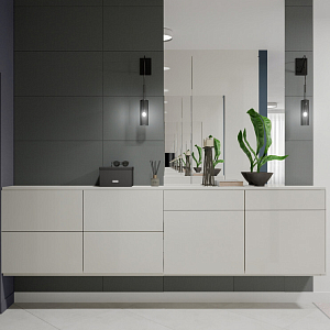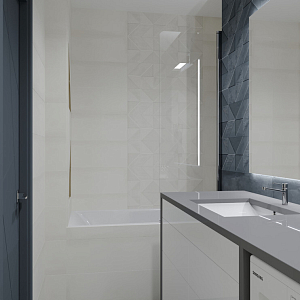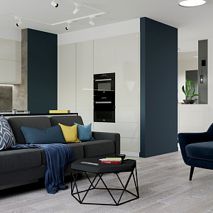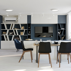 Интерьер гостиной с подсветкой настенной, подсветкой светодиодной, рейками с подсветкой и световыми линиями в современном стиле, проект «Квартира на Дмитровском шоссе» №16