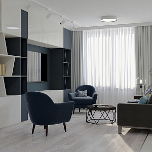 Интерьер гостиной с подсветкой настенной, подсветкой светодиодной, с подсветкой, светильниками над кроватью и световыми линиями в современном стиле, проект «Квартира на Дмитровском шоссе» №21