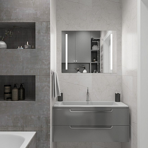Интерьер ванной с зеркалом на двери в современном стиле, проект «Квартира в ЖК "Домашний"» №2