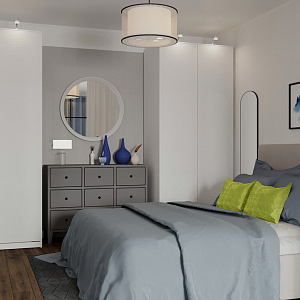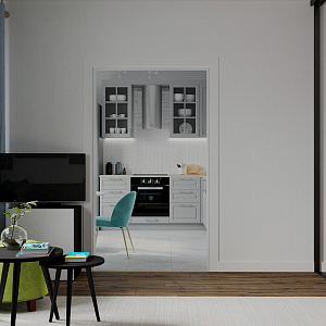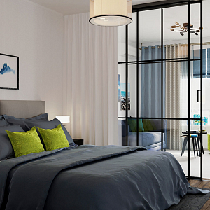 Интерьер с зонированием и перегородкой раздвижной в неоклассике и в стиле лофт, проект «Квартира-студия в ЖК "Варшавский"» №5