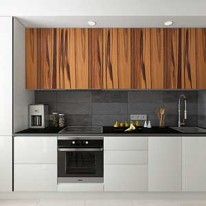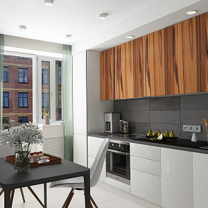 Интерьер с панно за телевизором в современном стиле, проект «Кухня в ЖК"Видный город"» №1