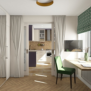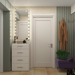 Интерьер коридора с проходной, гостиной-прихожей и кухней-гостиной с коридором в стиле фьюжн, проект «Квартира на Речном вокзале» №5