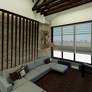 Интерьер с панно за телевизором, стеной с телевизором, нишей для телевизора, керамогранитом на стену с телевизором и подсветкой настенной в современном стиле, проект «Интерьер Загородного дома в котеджном поселке Новорижский» №6