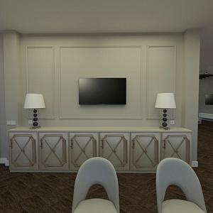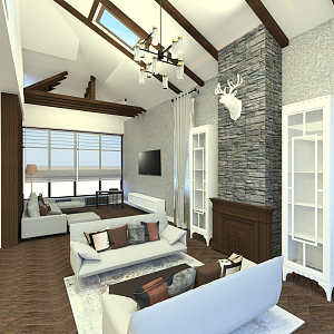 Интерьер гостиной с жалюзи, вертикальными жалюзи, рейками с подсветкой и дверными жалюзи в современном стиле, проект «Интерьер Загородного дома в котеджном поселке Новорижский» №10