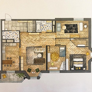 Интерьер с гостиной-столовой в стиле фьюжн, проект «Проект декорирования квартиры» №2