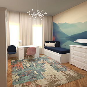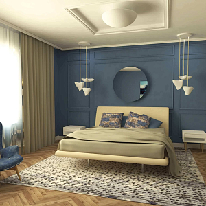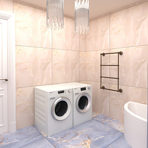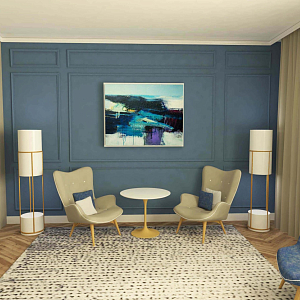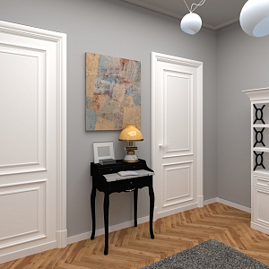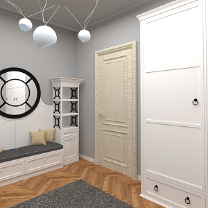 Интерьер столовой с подсветкой настенной, подсветкой светодиодной, проходной, рейками с подсветкой, с подсветкой и световыми линиями в неоклассике, проект «Проект двухкомнатной квартиры» №8