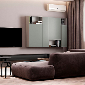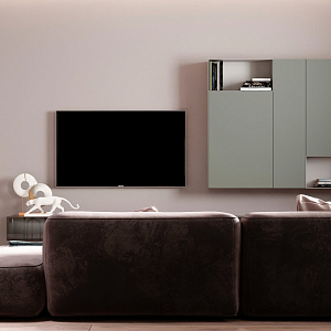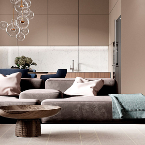 Интерьер гостиной с керамогранитом на стену с телевизором, нишей для телевизора, нишей с подсветкой, панно за телевизором, подсветкой настенной, подсветкой светодиодной, стеной с телевизором и телевизором на стене в современном стиле, проект «Квартира в с №11