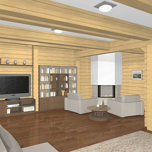 Интерьер c рабочим местом и в деревянном доме в скандинавском стиле, проект «Интерьер деревянного дома (брус)» №2
