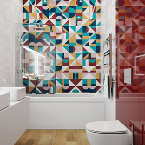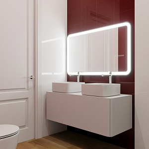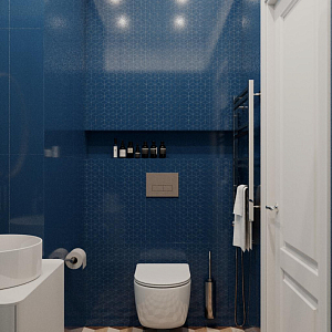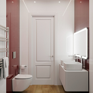 Интерьер ванной с подсветкой настенной и подсветкой светодиодной в современном стиле, проект «"Семейное гнездо" Квартира 140 кв м» №12