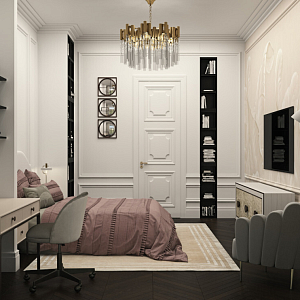 Интерьер спальни c рабочим местом в неоклассике, проект «Детская "Золотое Сечение"» №3