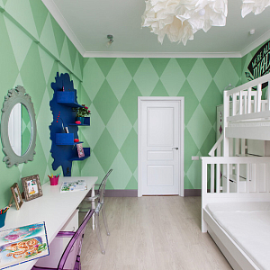 Интерьер детской c рабочим местом в современном стиле, проект «Сказочная детская комната в стиле "Алиса в стране чудес"» №2