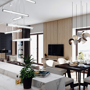 Интерьер прихожей с проходной и зеркалом на двери в современном стиле, проект «Интерьеры» №119