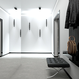 Интерьер cветовыми линиями и подсветкой настенной в современном стиле, проект «Проект Можайское шоссе» №1