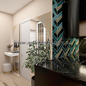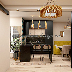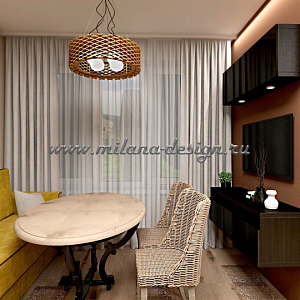 Интерьер гостиной с проходной и гостиной-прихожей в восточном стиле и в стиле фьюжн, проект «Однокомнатная квартира в этническом стиле» №5