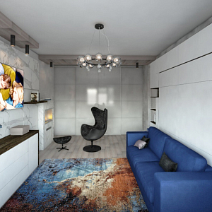 Интерьер гостиной с балконом в современном стиле, проект «Дизайн-проект для молодого человека однокомнатная квартира» №1