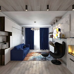 Интерьер гостиной в современном стиле, проект «Дизайн-проект для молодого человека однокомнатная квартира» №4