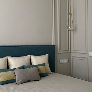 Текстильное оформление спальни в моём проекте ЖК Октябрьское поле