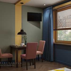 Визуализация дизайн-проекта: квартира 62 квадратных метра. Кухня-гостиная